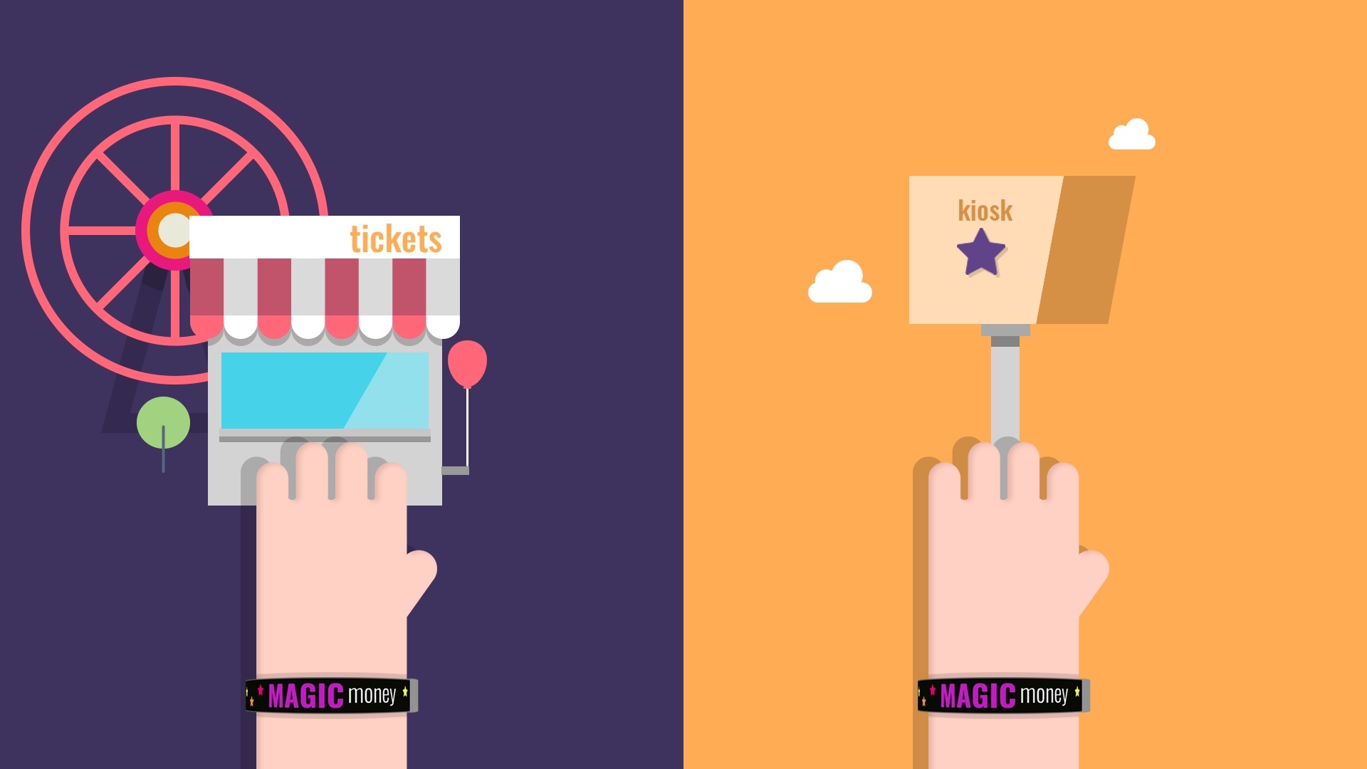 Magic Money offers a simple, mobile-first way to accept payments at fairs and events, eliminating lines, hassle, and loose change. To bring this to life, we created an engaging animated infographic that clearly shows how easy it is to download the app, use the bracelet, and enjoy a seamless experience from start to finish.